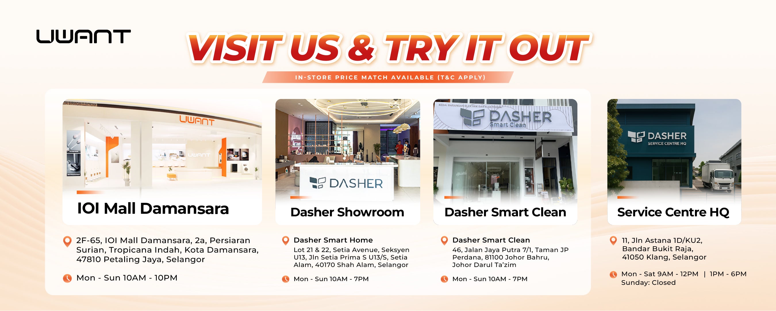 Free returns for faulty items to our Shah Alam, Selangor (Dasher Service Point) Warranty Center.