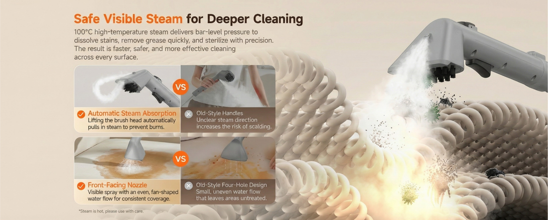 • 100°C High-Temp Steam: Instantly dissolves grease and sterilizes deep fibers for a hotel-level clean.