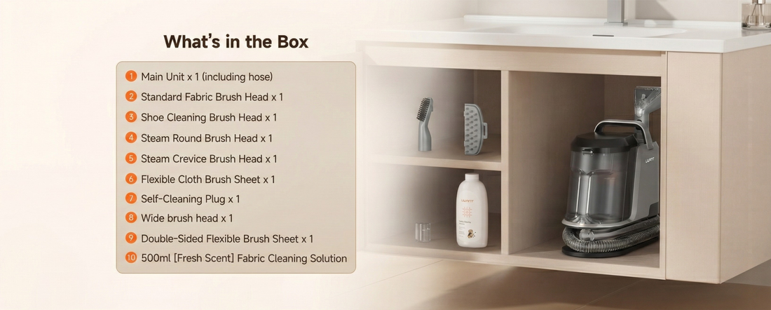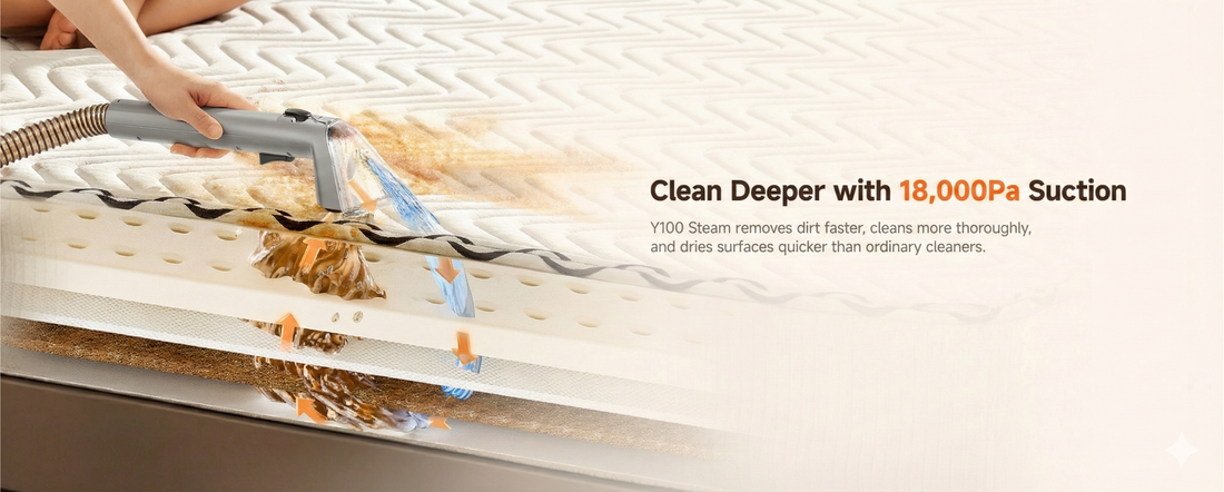 • 18,000Pa Super Suction: Powerful extraction lifts deep-seated dirt, pet messes, and odors while drying fabrics faster.